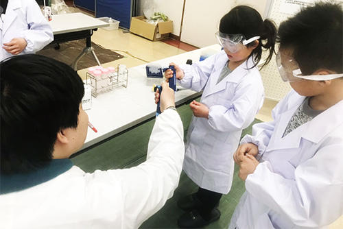 ・震災復興ボランティアの一環として、2016年より地元の子どもたちに向けて理科実験教室を開催