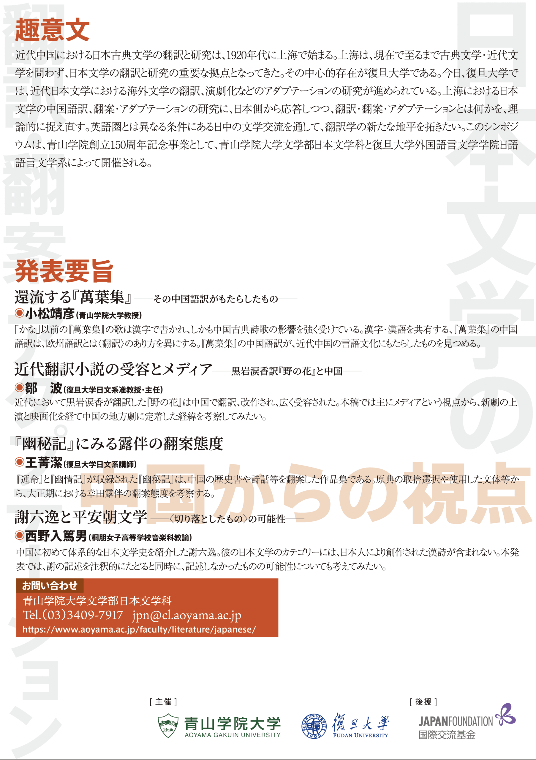 青山学院大学文学部日本文学科・復旦大学外国語言文学学院日語語言文学系 共催