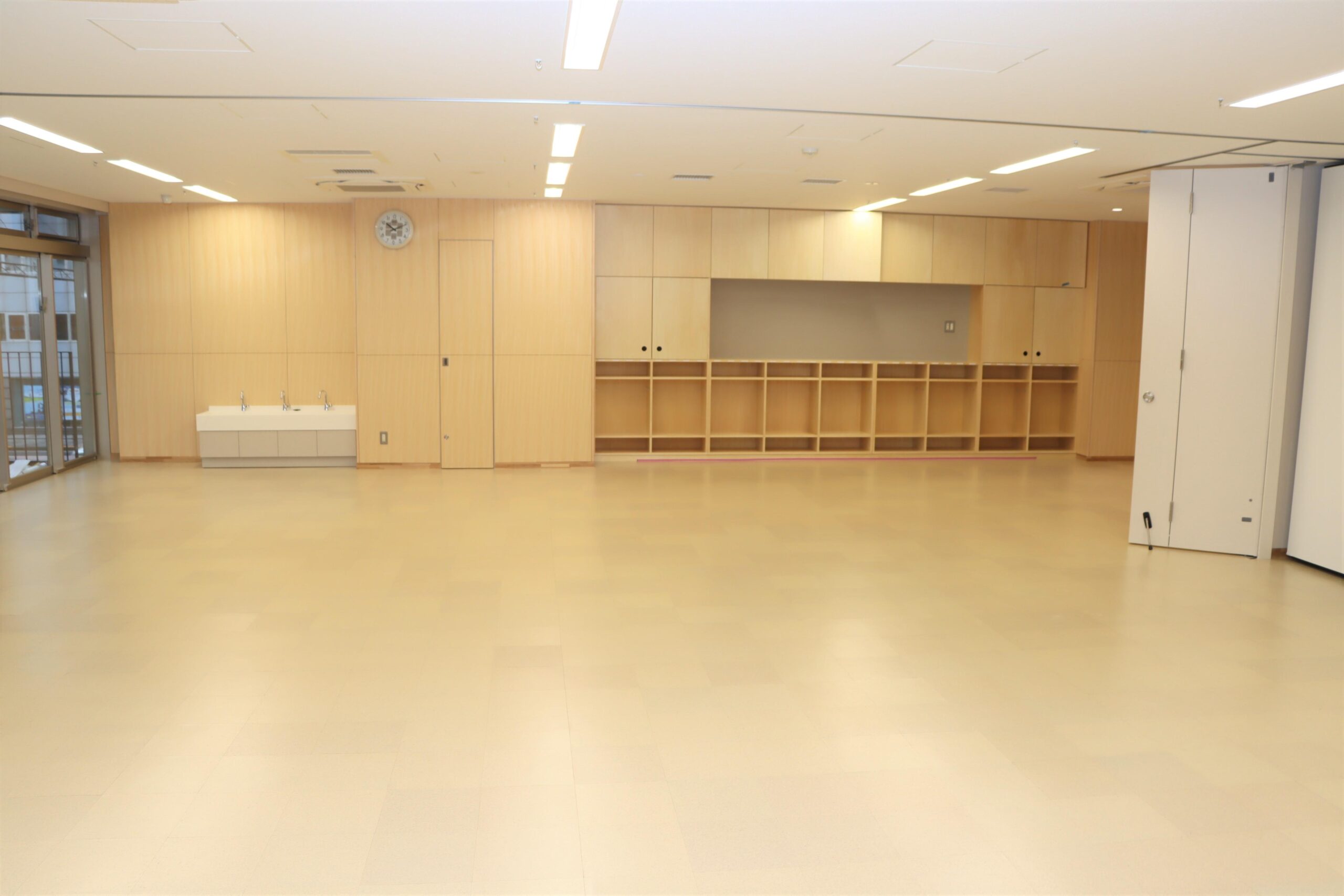 ・3階は専門学校、幼稚園の両方で使えるホールなどの交流スペースとし、複合による相乗効果を高める