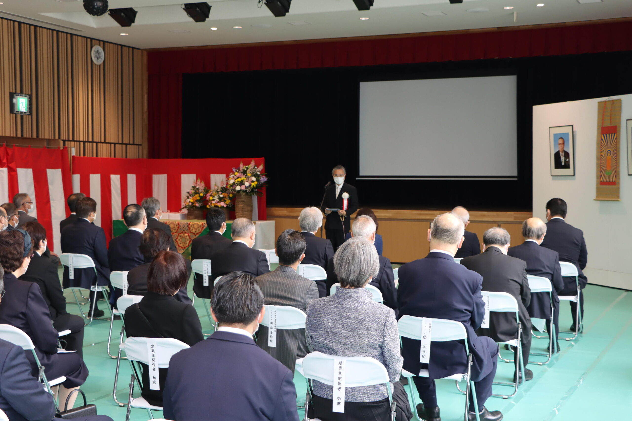 3月1日には、川並弘純理事長をはじめとした関係者らが出席し、竣工式を挙行。新校舎のピロティで定礎の除幕式やテープカットが行われた後、3階のホールで落慶法要が行われた。