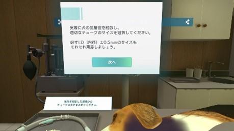 日本小動物外科専門医のきめ細かな監修により、必要な器具の選択から麻酔導入、気管挿管までをVRで忠実に再現しました。反復学習が可能であるため、手技の流れに関する理解度と技術力の向上を図ることができます。
