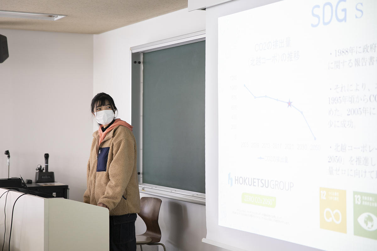 専門ゼミ(谷脇ゼミ)ではSDGsをテーマに、市川市環境部と連携しながら、地元地域の事業者(リサイクル、エネルギー分野)を対象として環境保全活動の取り組みについて実態調査を行いました。初の取り組みとなる今回は、少人数のグループに分かれ、合計5つの市内事業者を訪問し、インタビュー調査を行いました。この活動では、ゼミのテーマである認知心理学のバイアスの理論を基に、現実の環境対策に対する発見などについて、学生たちがグループワークを通してまとめました。調査結果については、ゼミの卒業研究として発表を行い、当日は市川市職員の方々も参加して各グループにフィードバックをしていただきました。