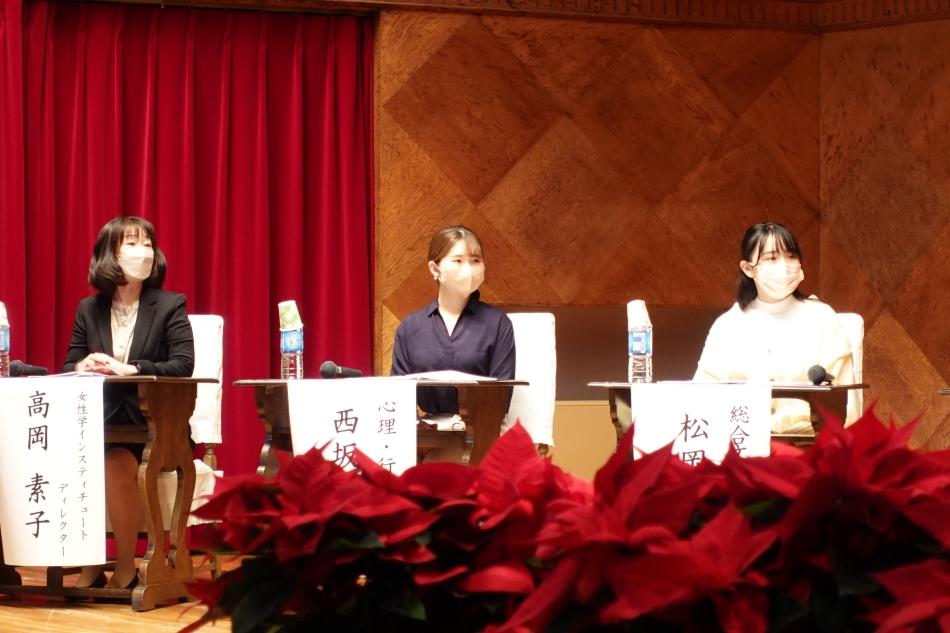 当日は高岡素子女性学インスティチュートディレクターがファシリテーターを務め、学生2名が登壇。学生らは両市長に、学生時代の学びや仕事を進めるうえで軸とする考えなどについて質問した。