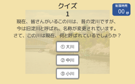 今回、本学の情報メディア学科 Visual Computing研究室(村木祐太 講師)から「位置情報によるクイズアプリ体験」のエデュテイメントを提案。アクアライナーに乗船しながら使用可能なアプリケーションを開発しました。位置情報(GPS)を用いて、アクアライナーが特定のスポットに接近すると、そのスポットに応じたクイズが出題されます。更に、アクアライナーから見える水辺の魅力スポットを豆知識とともに知ることができます。クイズの正解数に応じてプレゼントを用意しており、子供から大人までどなたでも楽しむことができます。本アプリケーションによって、歴史や水辺の魅力を楽しみながら学習することが可能です。