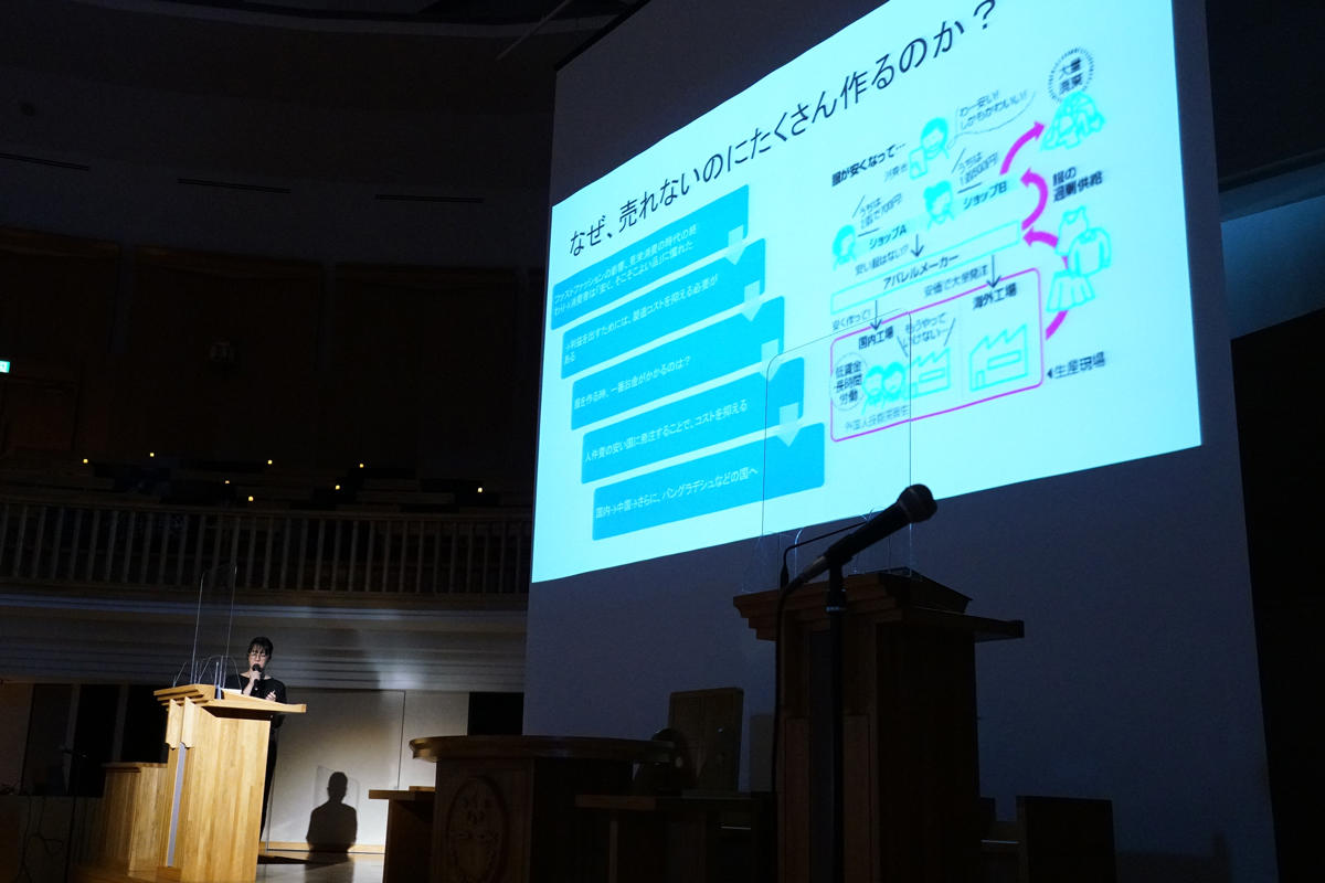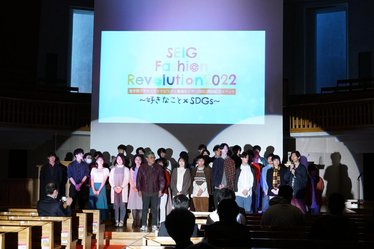 2022年に開設された「聖学院大学サステイナビリティ推進センター(SSC)」の開設記念イベントとして、ファッション産業の「大量廃棄」の問題に注目。公開講演会や古着を活用したファッションショー、古着のリメイクに挑戦するワークショップを実施し、古着のリサイクル会場も設置した。