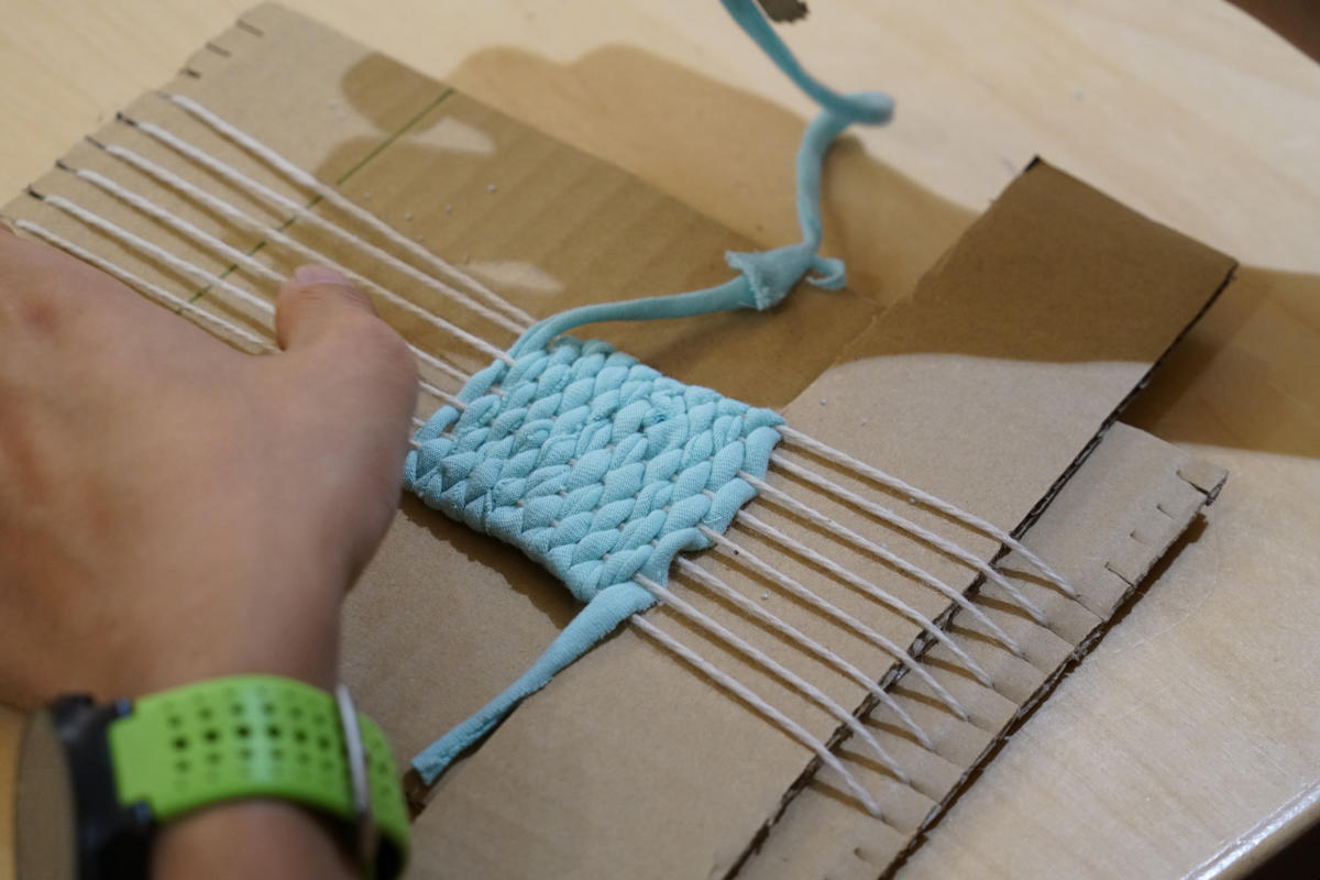 Petite Archeが一から企画した裂織ワークショップでは、古着を細く紐状に裂いたものを織り込む、江戸時代から伝わる裂織という手法を使ってコースターづくりを行い、古着のリメイクにも挑戦した。