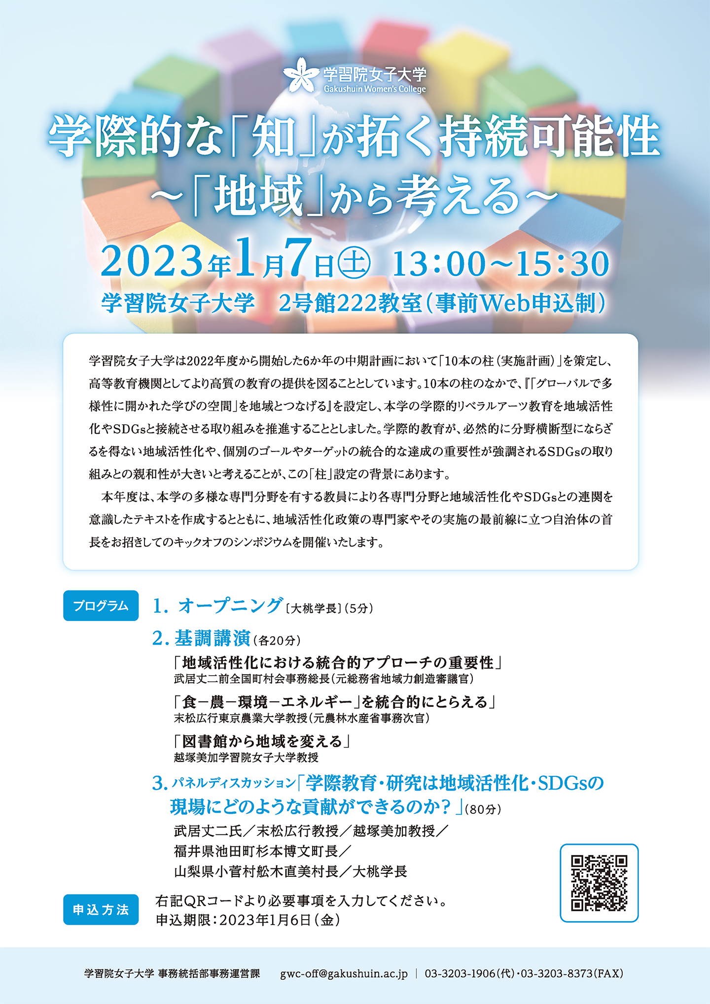2023年1月7日(土)シンポジウム『学際的な「知」が拓く持続可能性~「地域」から考える~』を開催 –学習院女子大学