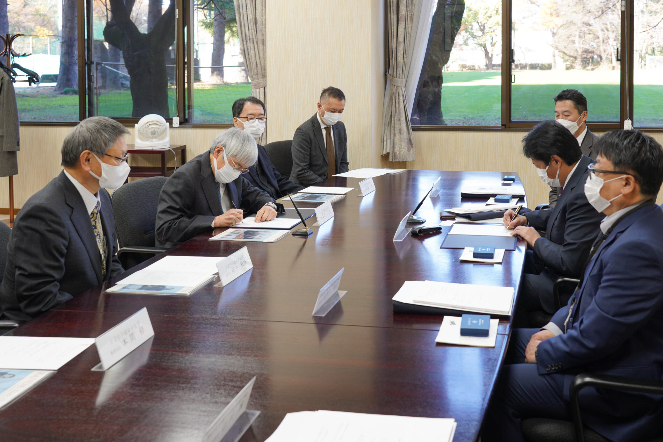 12月12日(月)、芦澤康宏学校長、志村二三夫学長をはじめとする9名が両校から出席し、十文字学園女子大学にて協定締結式を行いました。協定では、以下の内容について締結しました。