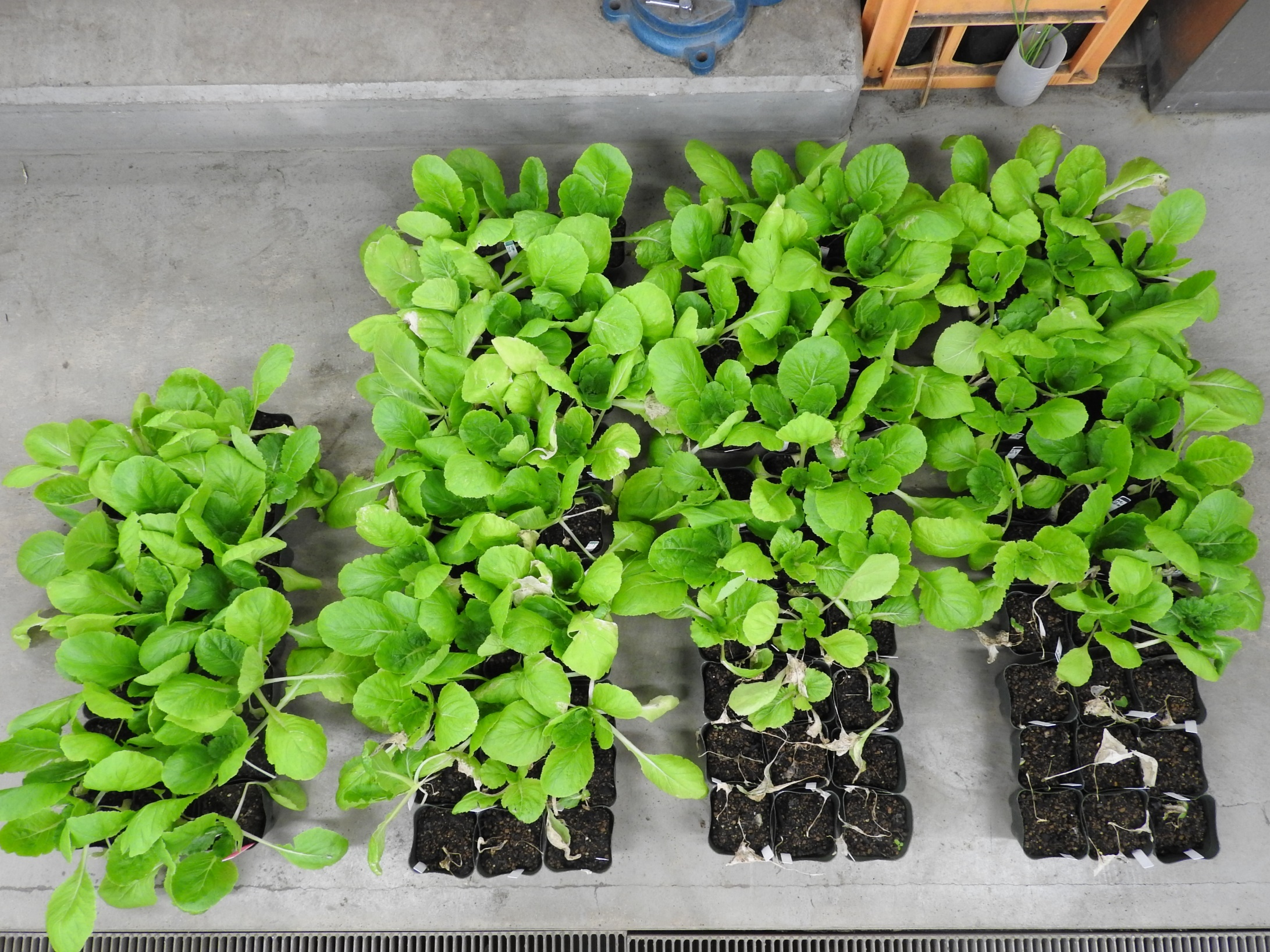本研究室では、環境にやさしく、防除効果の高い物質の探索および実証試験を行っています。その結果、多くの植物病に対して、ミョウバン類(カリミョウバン、焼ミョウバンなど)処理の優れた防除力を発見しました。ミョウバン類は、ビスケットやパンの膨張剤、根菜などのアク抜きなどに用いられている馴染み深い物質です。