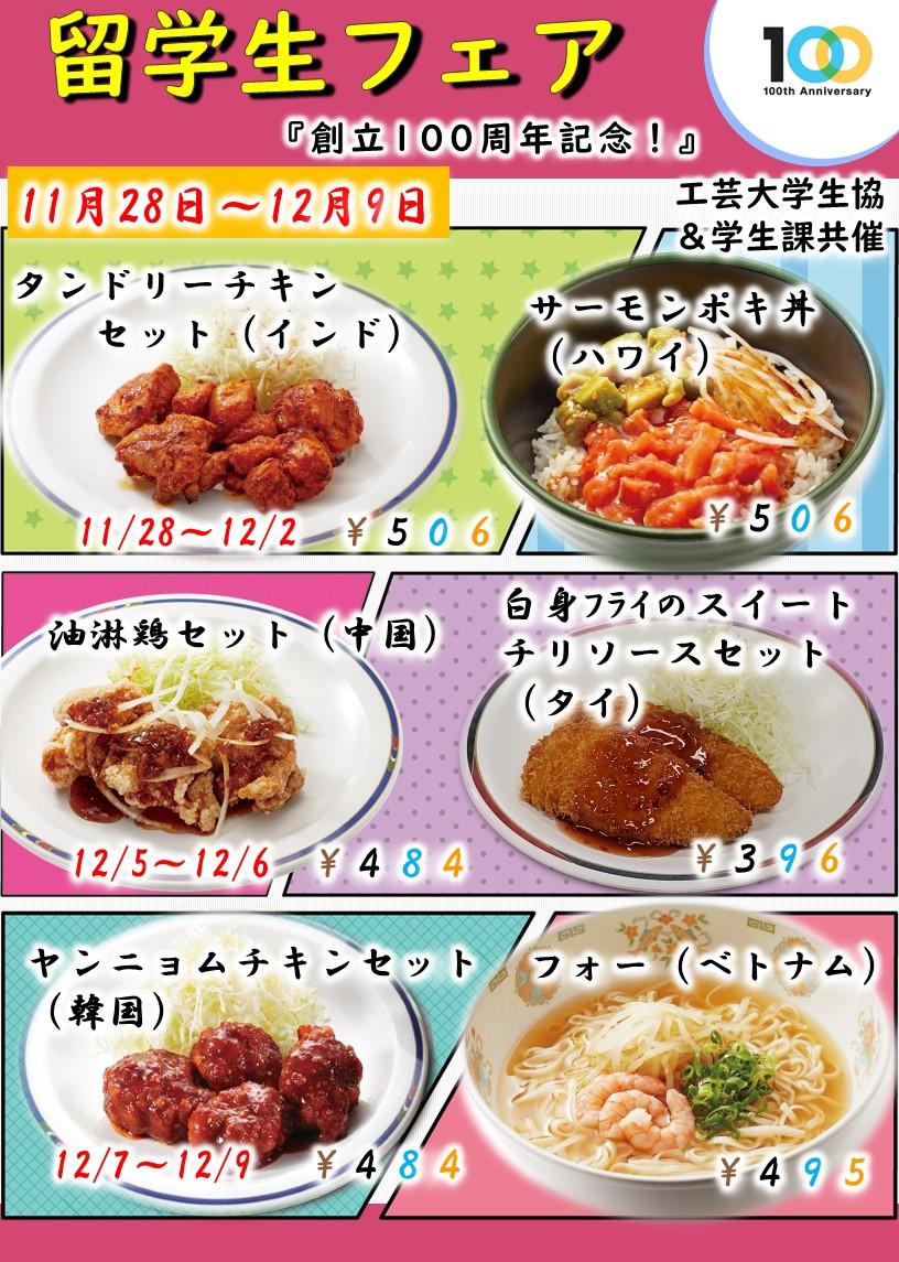本学はこれまでにも東京工芸大学生活協同組合を通じて、創立100周年を記念した取り組みを行ってきた。昨年は、余った食材を組み合わせ「FOODレス救弁当」と名付け、低価格で販売し、食品ロス削減の取り組みを開始した。また、今年度は後援会の支援による100円朝食の提供や、留学生との交流を目的とし、各国の料理を特別メニューで提供する「留学生フェア」などを実施してきた。