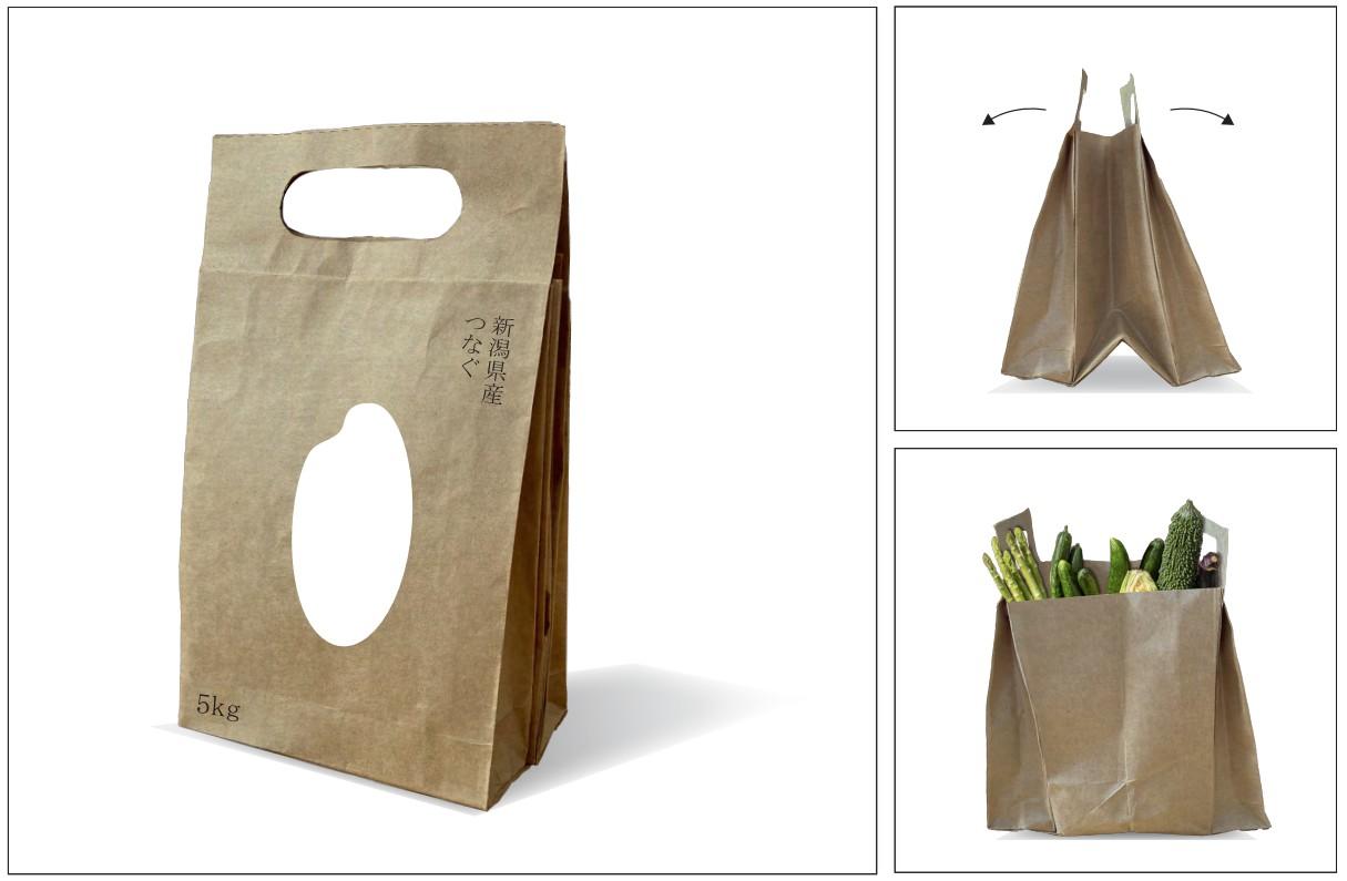 作品コンセプト:「重いものは男性」、「買い物は女性」という偏見に疑問を感じ、重さをシェアする米袋を作りました。人と人をつなぎ、負担の不平等について考えるきっかけになると思います。