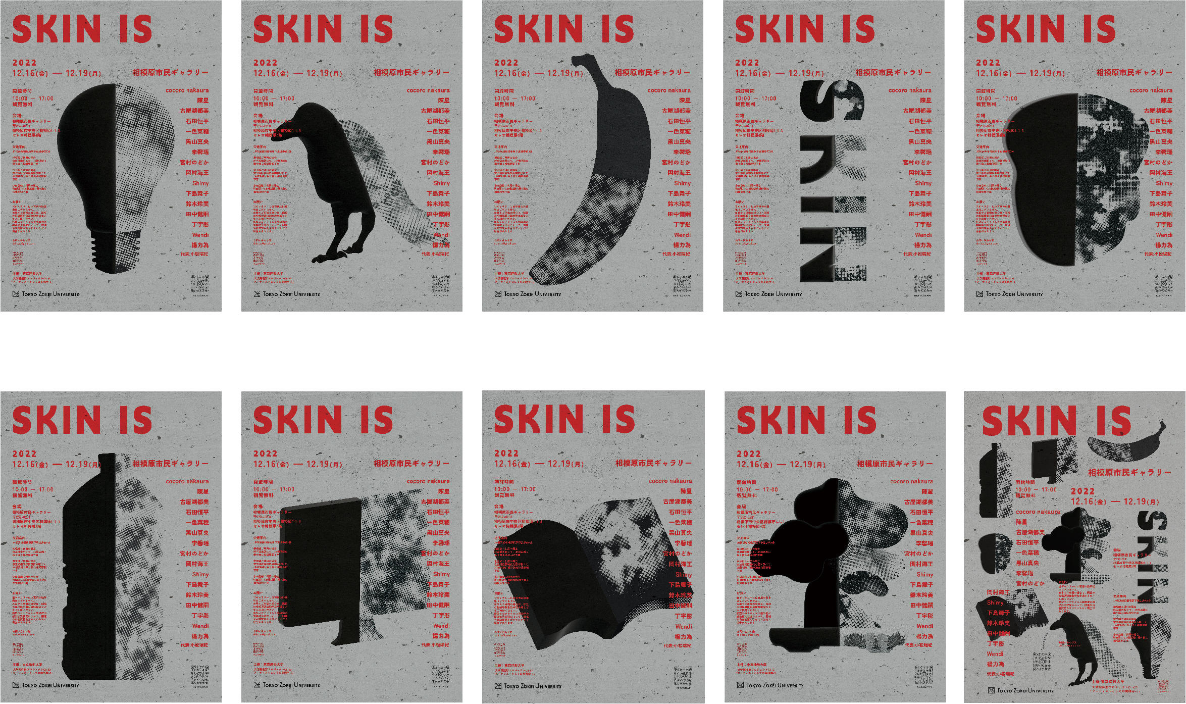 英語のskinは皮膚、肌、表皮、スキン、膚など、 私たちが普段日本語の皮膚から連想する概念を広く指し示しています。社会の中で日々メディアや自身の目を通して認識している、もの・ことを 「社会の表面」であると捉えた時、私たちは常に私たち側に面を見せているあらゆるもの・ことを「SKIN」として認識することができます。それらに囲まれた私たち自身も自らの皮膚、「SKIN」に覆われています。また私たちが日々制作している作品も「SKIN」のひとつであると捉えられます。本展では、普段の生活、制作の中で感じる表面、またはその内側について言及するとき、「SKIN」がどの様に考えられるのかを探求します。デザイン、絵画、彫刻など多様な表現の作品鑑賞を通じて、意味的・物質的に表面=「SKIN」をもつものの在り方を探求する場として展覧会をお楽しみください。