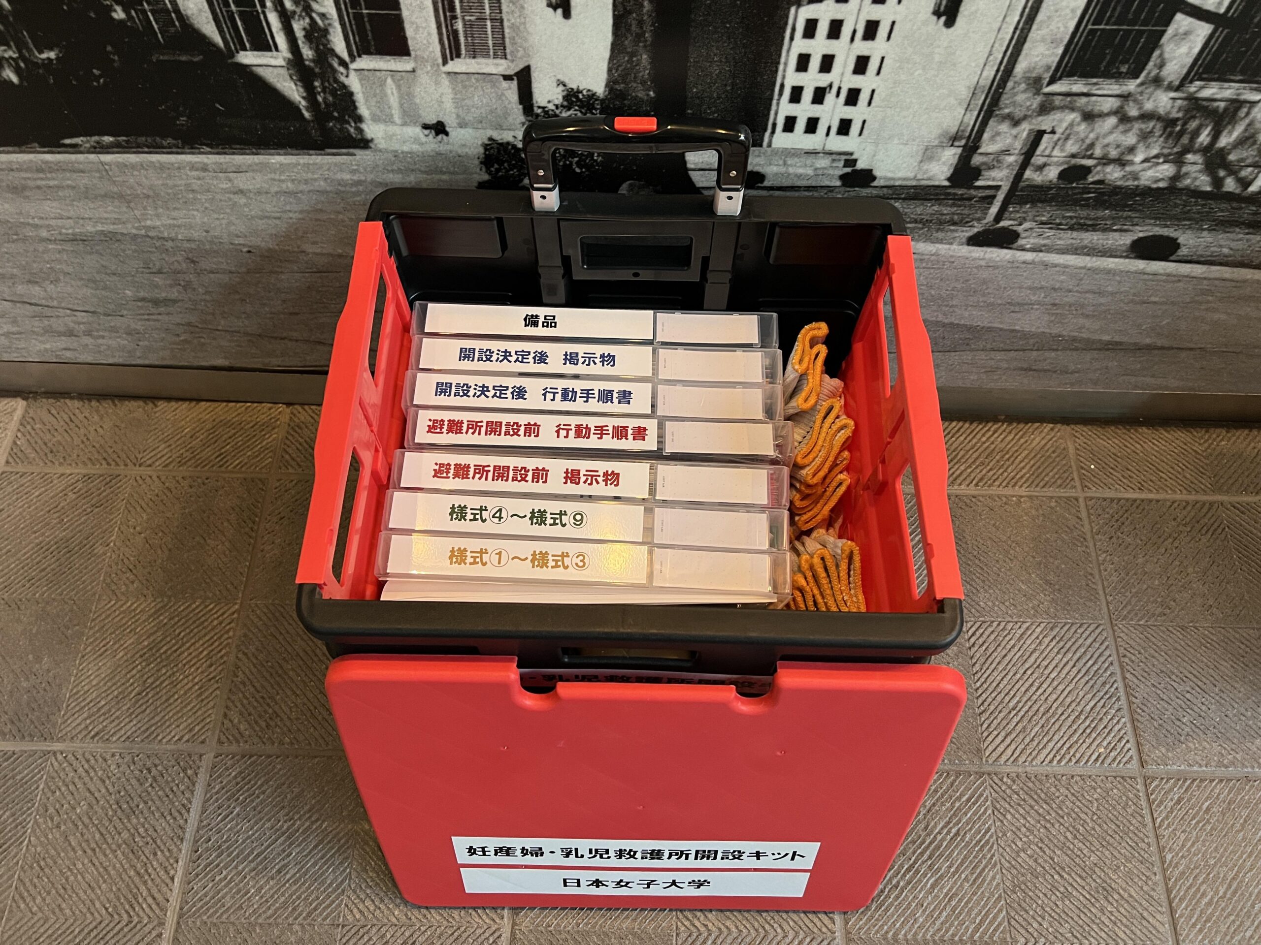2016年の熊本地震では、文京区長から熊本市長へ乳児のいる母子専用避難所のアイデアを提案した経緯があり、実際に乳児をもつ母親のための避難所が開設されました。しかし準備・周知が充分ではなく、想定していた活用がなされなかった実情があります。そこで本学は、事前に準備することでスムーズな本救護所の設置を実現するため、文京区と協力して専用の開設キットを開発し、内容の検討を重ねてきました。