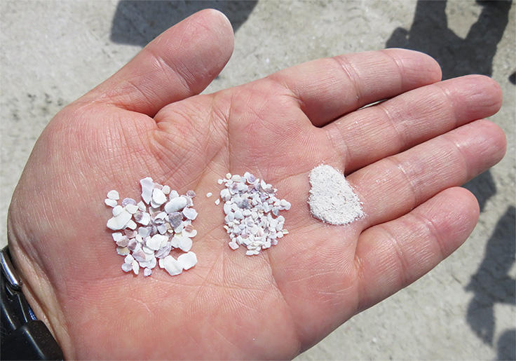 ホタテ貝殻は、主成分が炭酸カルシウム(CaCO3)で出来ています。海水中のCO2を吸収して成長し、貝殻の質量のうち約44%はCO2を内部に固定蓄積できるため、廃棄せずにプレキャストコンクリートへ再利用することにより、ホタテ殻が蓄積したCO2をコンクリート内部に固定し続けることが出来ます。従来、建築産業では、建物への用途として活用が期待されてきましたが、粉砕物が不均一であることなどにより十分に使用できず、これまでは土木用途での再使用に限られていました。