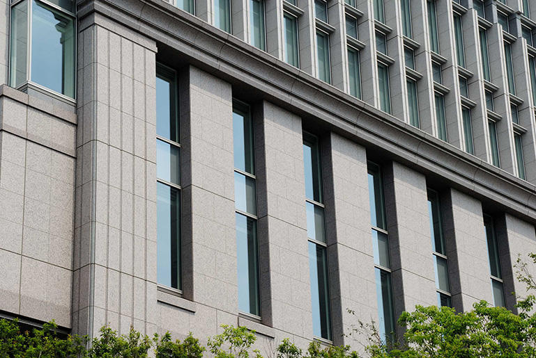 2 プレキャストコンクリート カーテンウォール:プレキャストコンクリートで構成される、建築物の内部と外部の空間をカーテンのように仕切る壁のこと。カーテンウォールは、高層建築物の外壁に欠かせない構法として定着している。