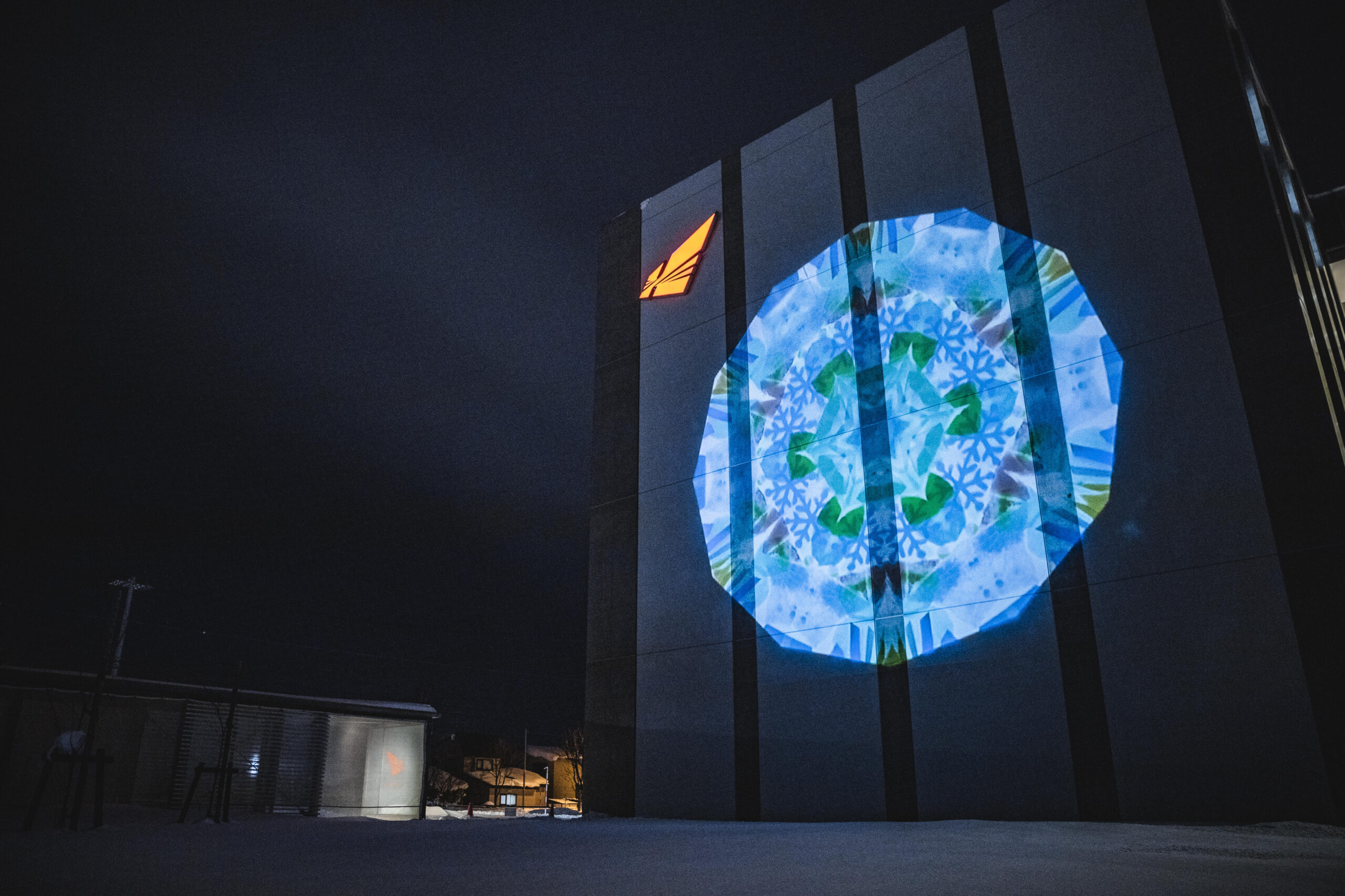 日本を代表する万華鏡作家、依田満・百合子夫妻による投影型万華鏡を校舎壁面に投影します。
