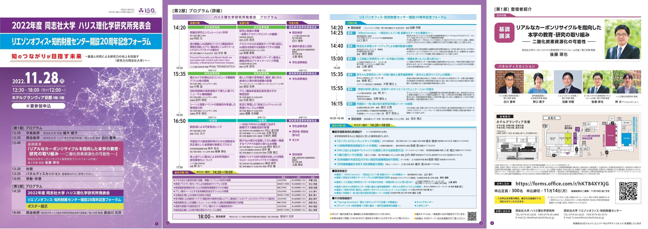2022年度 同志社大学 ハリス理化学研究所発表会 / リエゾンオフィス・知的財産センター開設20周年記念フォーラム 知のつながりが目指す未来 ~創造と共同による研究力の向上を目指す「研究力の同志社大学」へ~