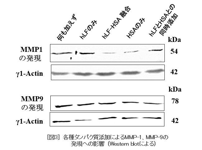 [図3] 各種タンパク質添加によるMMP-1、MMP-9の発現への影響(Western blotによる)