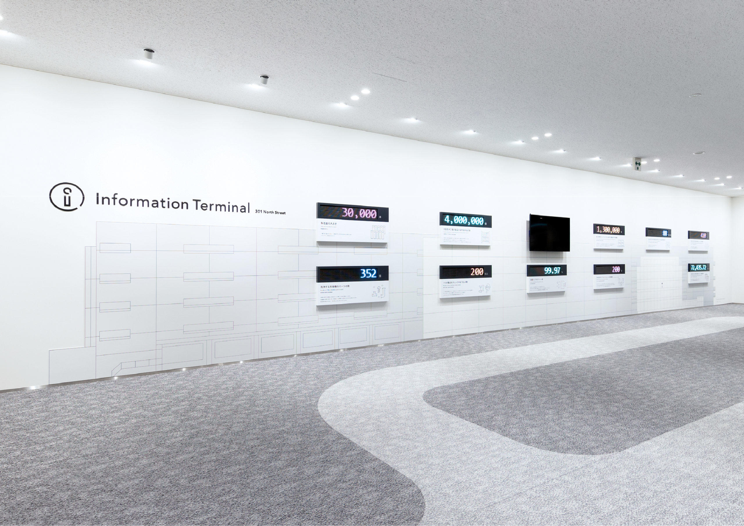 サイン計画は「旅」から着想し、旅の移動中に目にするであろう標識やバス停を模したサインを点在させた。また、主要な導線に通り名をつけ、各ブースに番地サインを設置することで施設全体を街に見立てている。