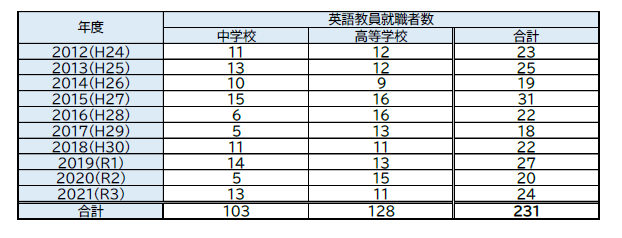 <神田外語大学の過去10年間の英語教員就職者の輩出実績>
