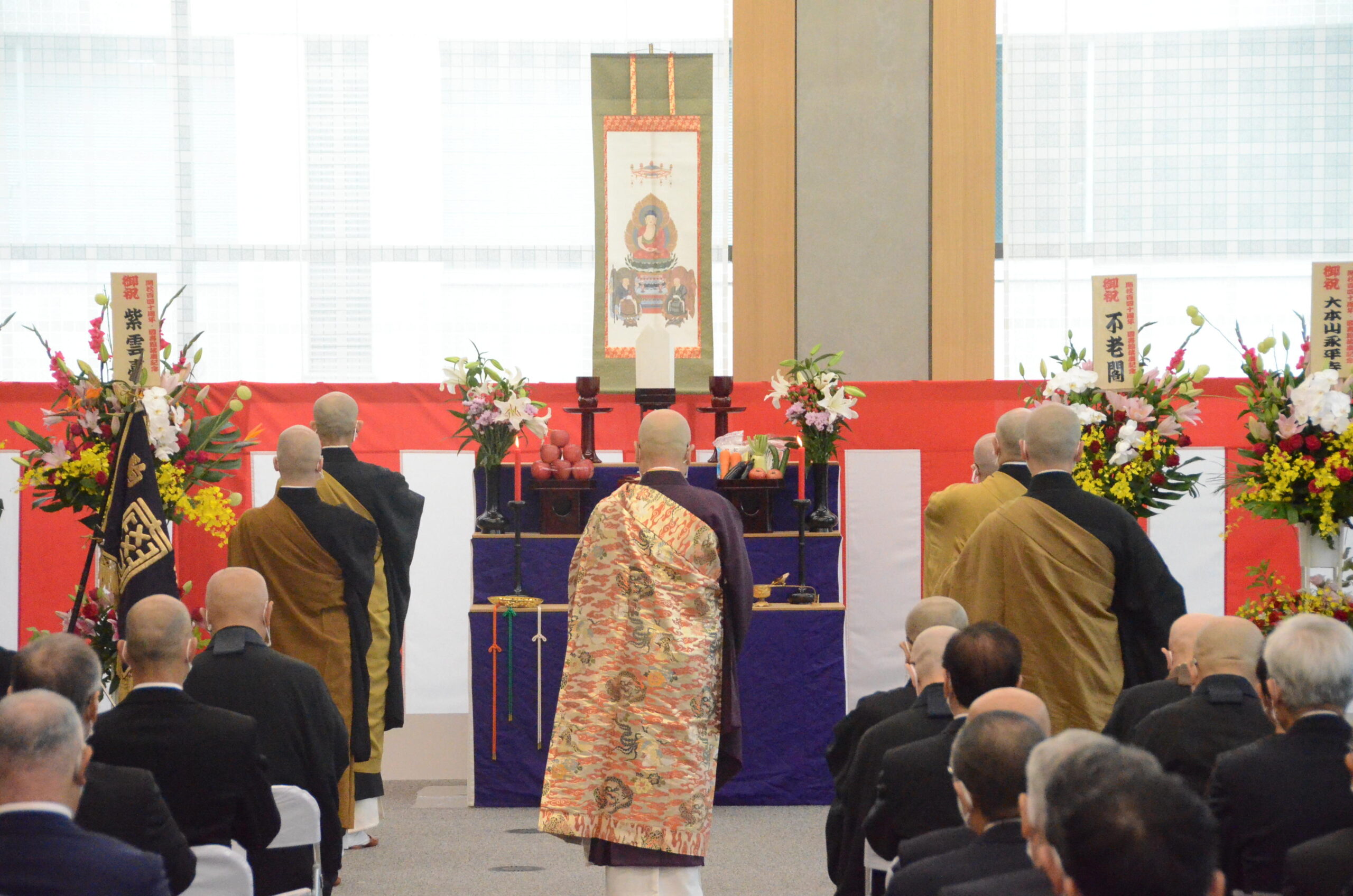 また、10月17日(月)には新図書館が開館する。それに伴い10月12日(水)には、新図書館において来賓列席のもと、開校140周年・図書館落慶記念式典を挙行。永井政之総長が導師を務め、落慶法要が執り行われた。