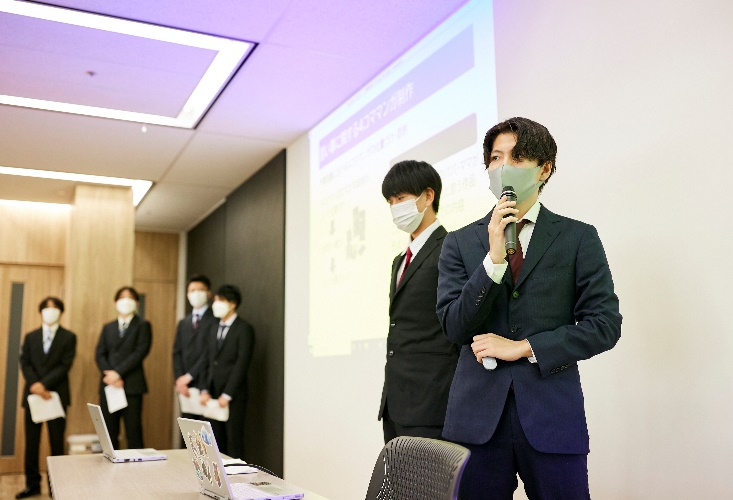 企画案をプレゼンテーションする学生