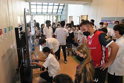 参加した生徒は、本学園のバスケットボール部に所属する中学・高校生約40名で、通訳は本学園の国際バカロレアクラスの生徒、クリニックのサポートは大学生が担当し、学園の生徒・学生の参加のもとで講師となる選手たちをお迎えしました。