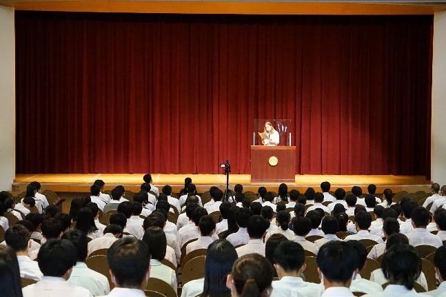 ・9月27日(火)に龍谷大学付属平安高等学校にて、ウクライナから龍谷大学に留学している学生による講演会を開催。高校1年生433名が参加。