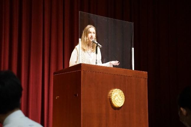 ロシアによるウクライナ侵攻で、今も現地では戦争が続いています。当日の講演会では、現在もウクライナで戦争が続いていることを気にかけ、忘れないで欲しいという想いを日本語で高校生に訴えかけました。