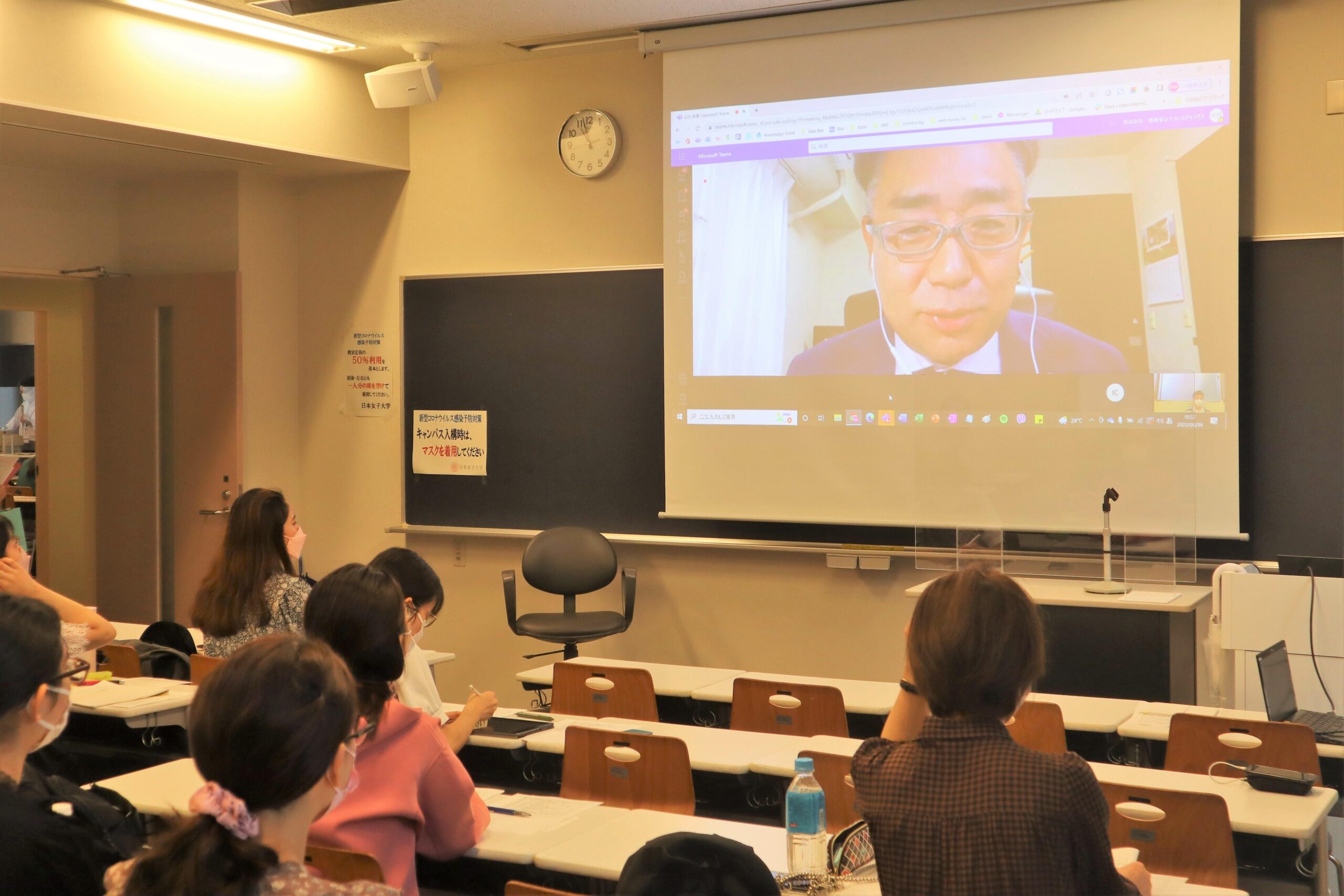 9月24日(土)の初回授業では、全14回のイントロダクションとして、飯田教授が日本女子大学の食教育の歴史と日本の食の歴史の関わりや、日本女子大学として”これからの食”を探求することの意義を、歴史的な背景を踏まえて、講義しました。授業の後半では、学生一人一人が現段階で考える日本食について発言をする機会があり、素材の味を活かし栄養バランスが良いイメージ、との意見や、食とコミュニケーションの関係性、うま味や出汁についてなど、多様な視点での発言が出てきていました。また、これからの食について”持続可能な食材”といった言葉も上がりました。今後もグループワークなど、学生の積極的な対話を中心に授業を進めてまいります。