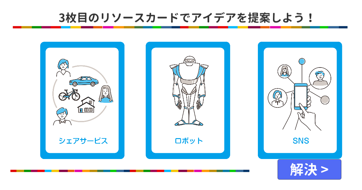 5.プレイヤーは、選んだリソースカードを用いたアイデアを伝えてください。