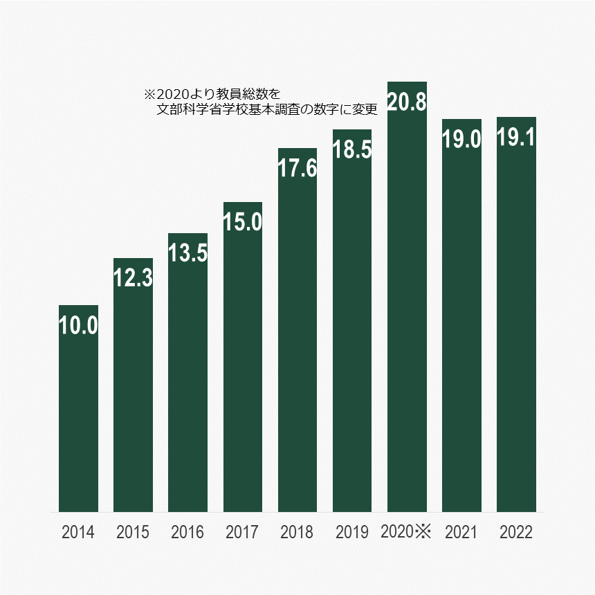 <目標1> 全専任教員数に対する女性教員の割合を、2年間の平均で20%にする。