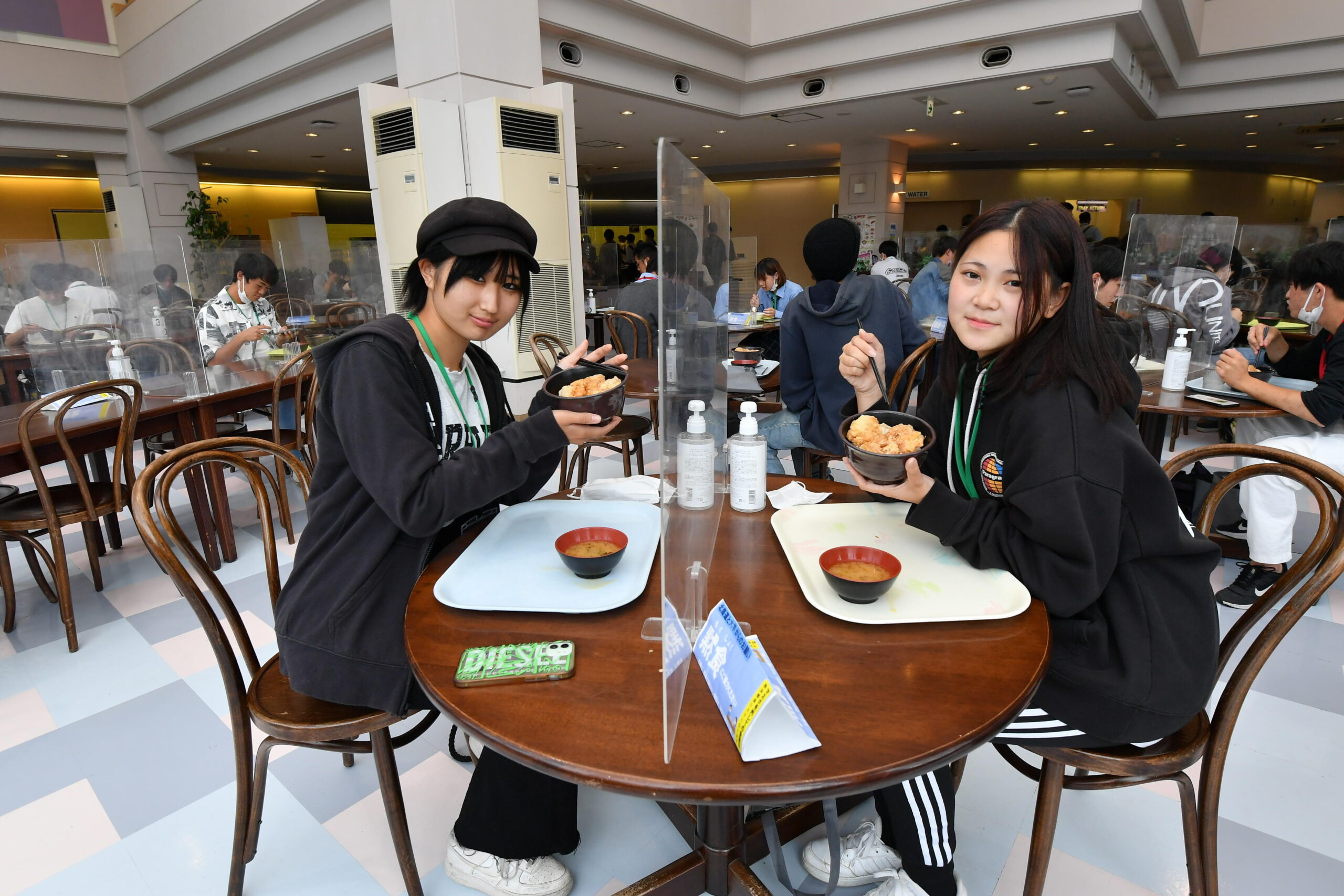 各コースともに、ランチタイムには食堂で学食体験が実施され、美味しいと話題の札幌大学の学食を笑顔で実食体験する参加者の姿が見られた。