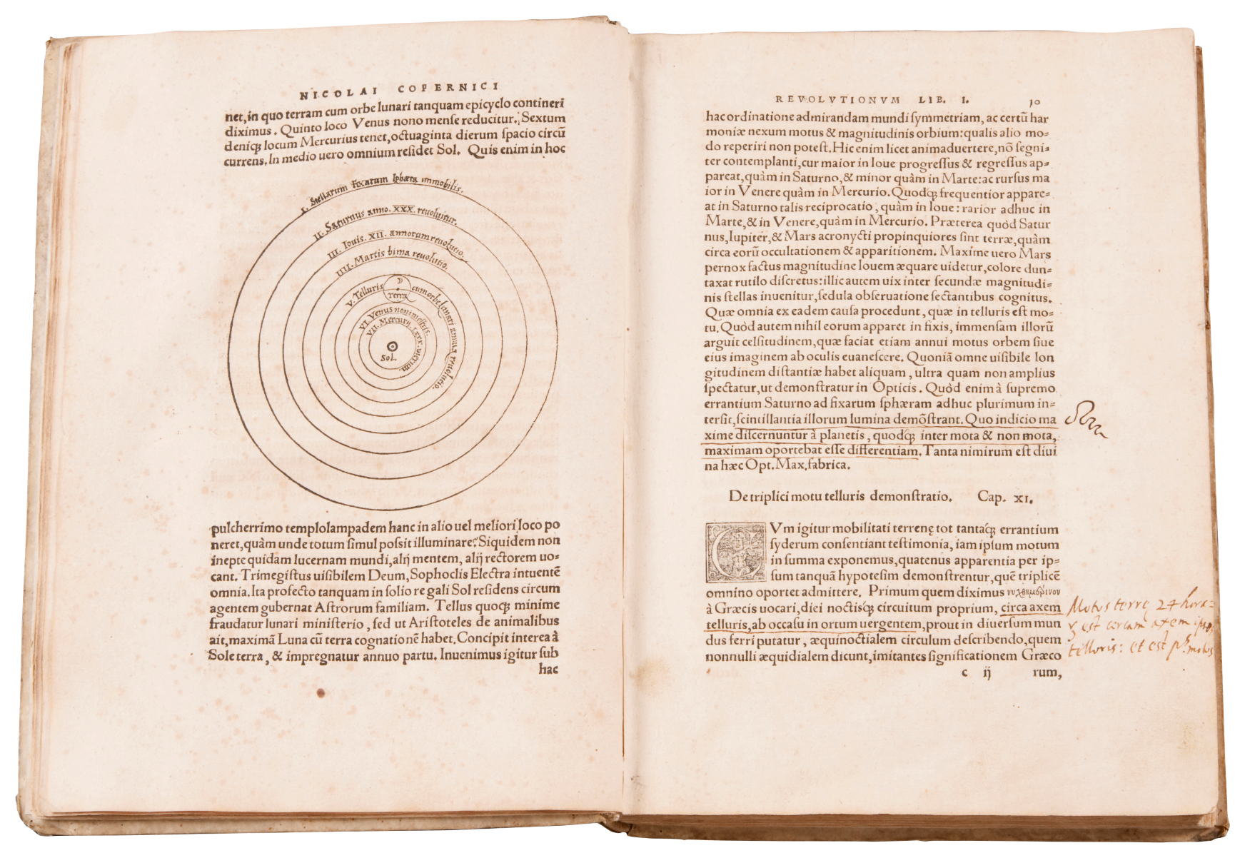 コペルニクス、ガリレイ、ニュートン、デカルト、アインシュタインなど世界を一変させた発見や科学技術の初版本およそ140冊が一堂に特別展示「手稿の中の宇宙 レオナルド・ダ・ヴィンチを旅する」も同時開催