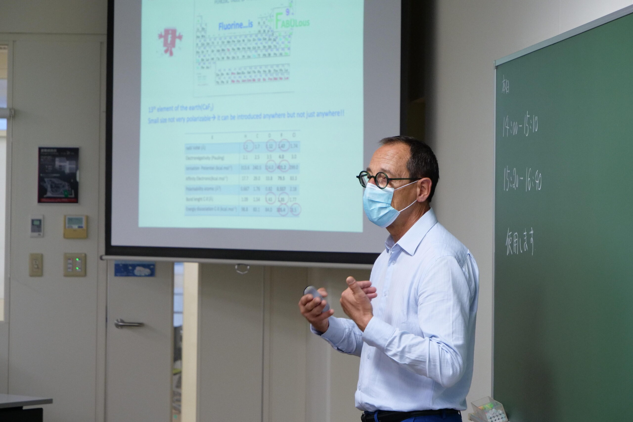 9月6日(火)と7日(水)には、本学の学部生・大学院生に向けた有機フッ素化学を基盤とした創薬化学に関する英語での集中講義が行われました。