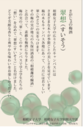 今年度は感染対策を行ったうえで、3年ぶりにすべての製造工程に学生が携わることができました。6月初旬に学生と教職員が62kgの梅の実を収穫し、久保田酒造株式会社(代表取締役社長・久保田 徹)へ持ち込み、「相模灘 純米吟醸」に漬け込みました。今年のラベルは商品名の漢字「翠想」を、ひらがなの「すいそう」で書くという、隠し文字アートでデザインしたもので、本学の生活デザイン学科の学生が考案しました。