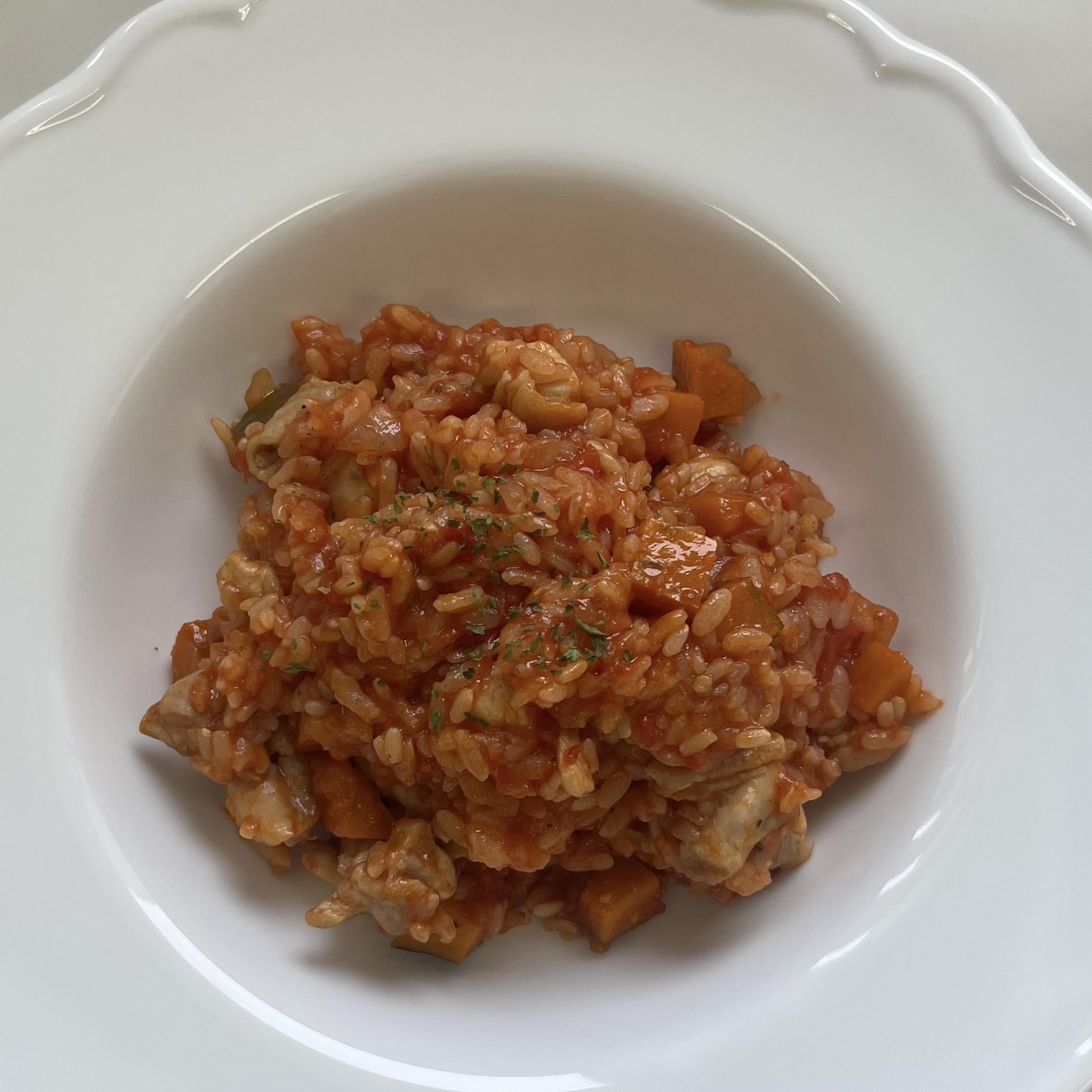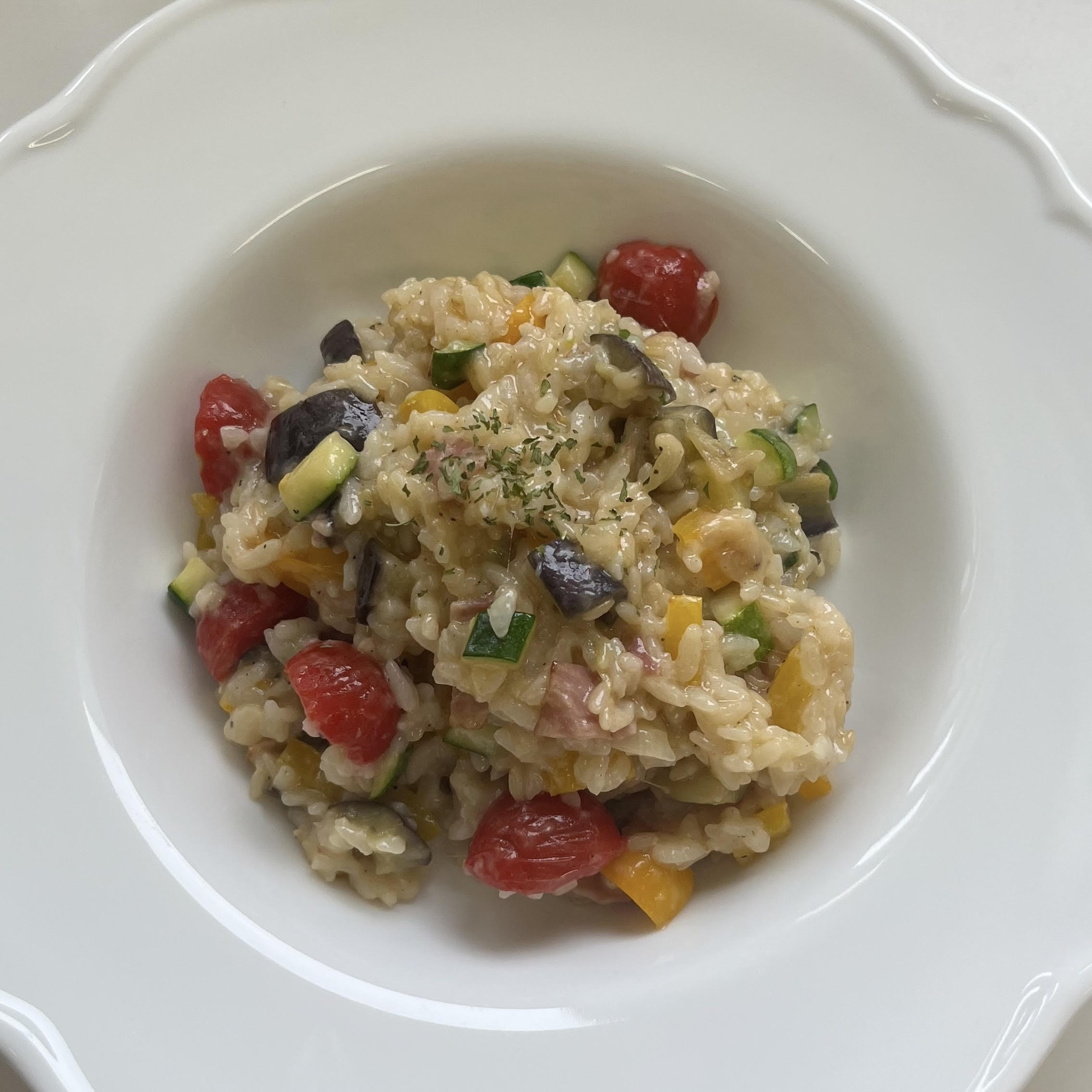 ●リゾット:通常はお米の状態から作りますが、WE米を使用することでご飯から作ったものでも柔らかくなりすぎず、通常の作り方のものと同様の食感を実現しました。パプリカやズッキーニなどの野菜を使用することで食感と彩りにこだわりました。