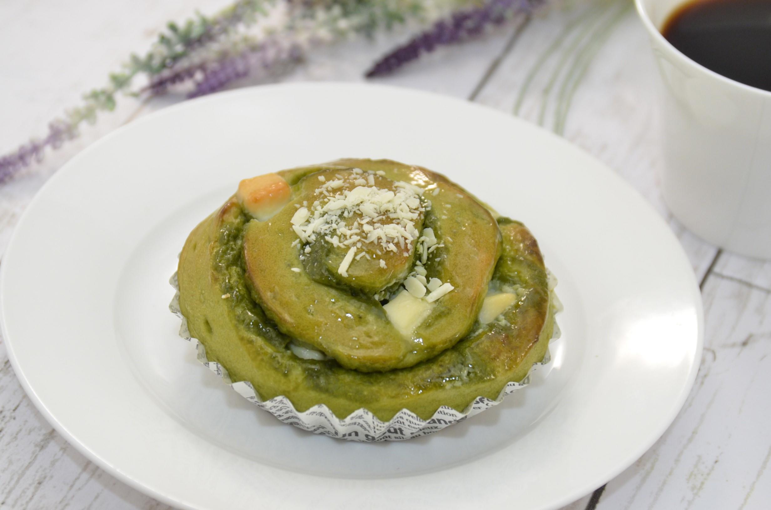 ・抹茶カスタードとホワイトチョコを巻き込んで焼きました。
