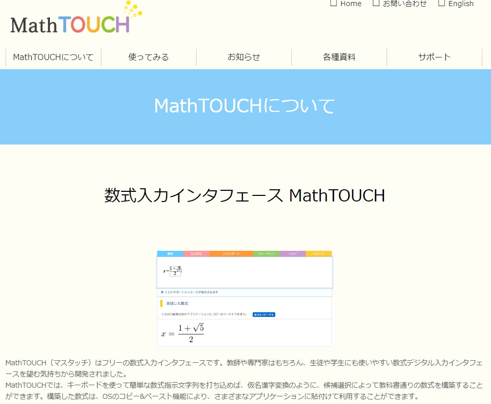「MathTOUCH」は福井教授が2015年に特許を取得した画期的なソフトです。従来、数式のデジタル入力は、特殊なプロットやコマンドで指示しないと作成できない難点がありましたが、「MathTOUCH」は数式を文字情報として打つだけで数式の候補が表示されます。