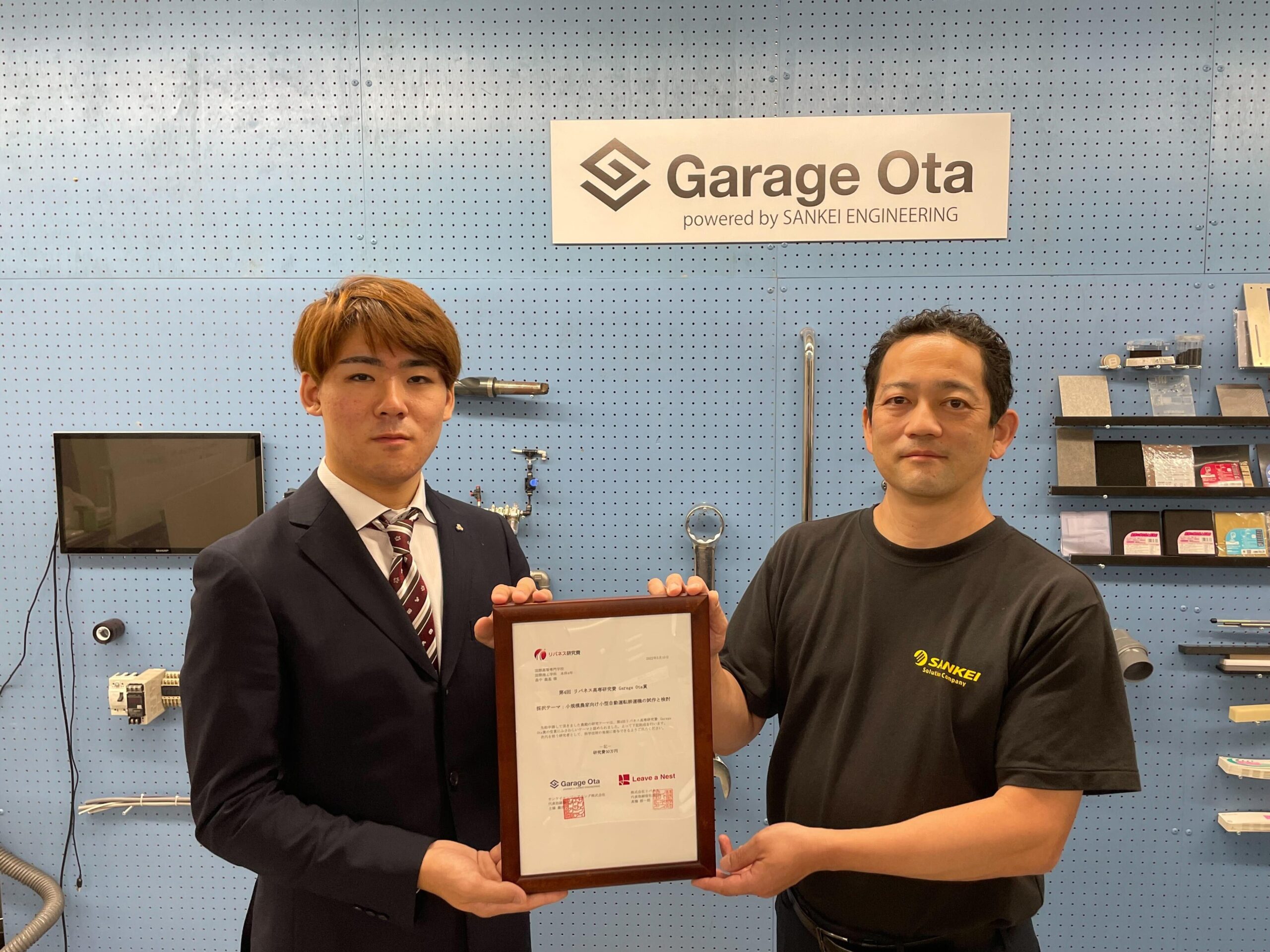 インターンシップ初日の8月11日(木)、畠中さんにGarage Otaを運営するサンケイエンジニアリング株式会社代表取締役の土場義浩氏から「第4回リバネス高専研究費 Garage Ota賞」の採択通知書が授与されました。