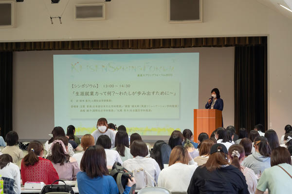 恵泉女学園大学(東京都多摩市)では、5月28日(土)に3年ぶりとなる「恵泉スプリングフォーラム」を開催した。当日は、屋外で学生有志によるメイポールダンスが華やかに披露され、構内では大学創立者である「河井道先生の展示コーナー」を特設、学生・教職員たちによる各種参加団体の展示や販売が行われた。また、メインイベントの1つであるシンポジウムは、1年生全員を対象に、恵泉ブランドとして目下注力している「生涯就業力」を学び合うことを目的として行われた。