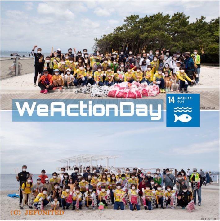 また、2022年5月8日(日)に実施した「WE ACTION DAY(WEリーグの理念を推進する日)」では、千葉市稲毛海浜公園のビーチクリーン活動に参加しました。当日は、チームファンやサポーターを含め約40名が参加し、約1時間の活動で、90Lのごみ袋3袋分のごみを集めました。
