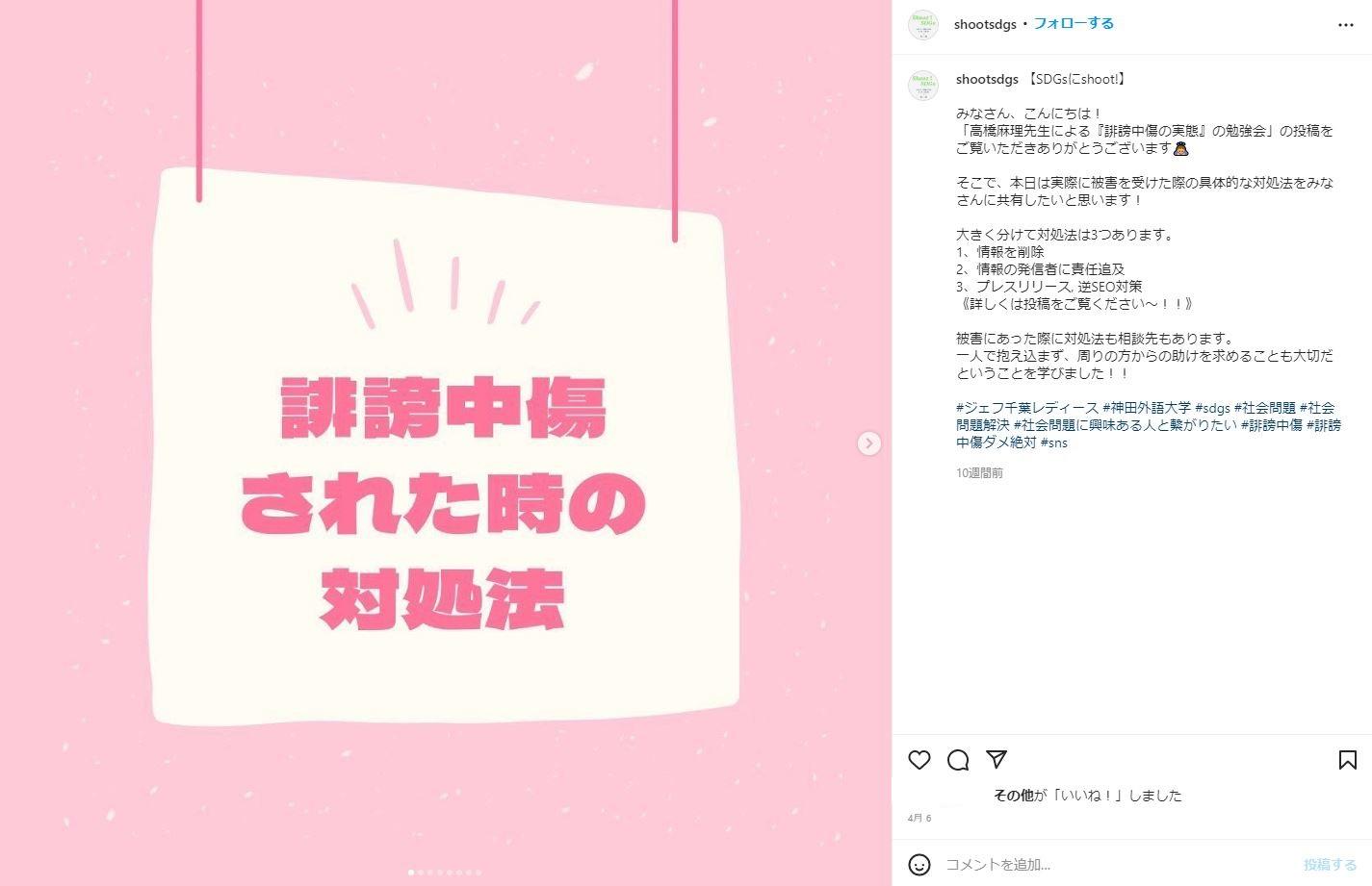 【SDGsにShoot! Instagramアカウント】