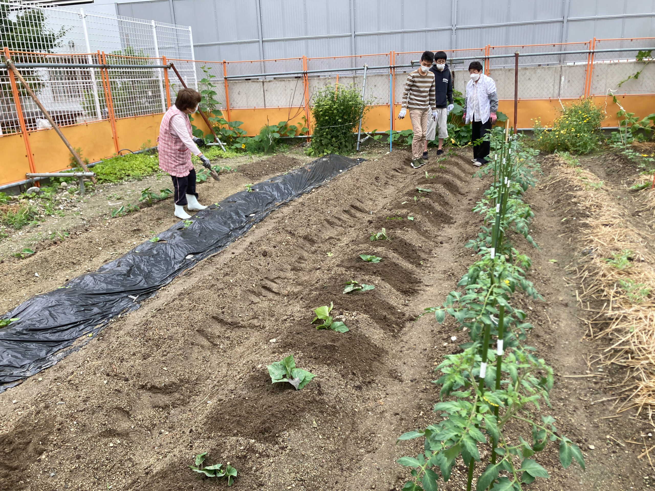 (1)団地敷地内の菜園で野菜づくりサポート(荒地を耕し菜園に)
