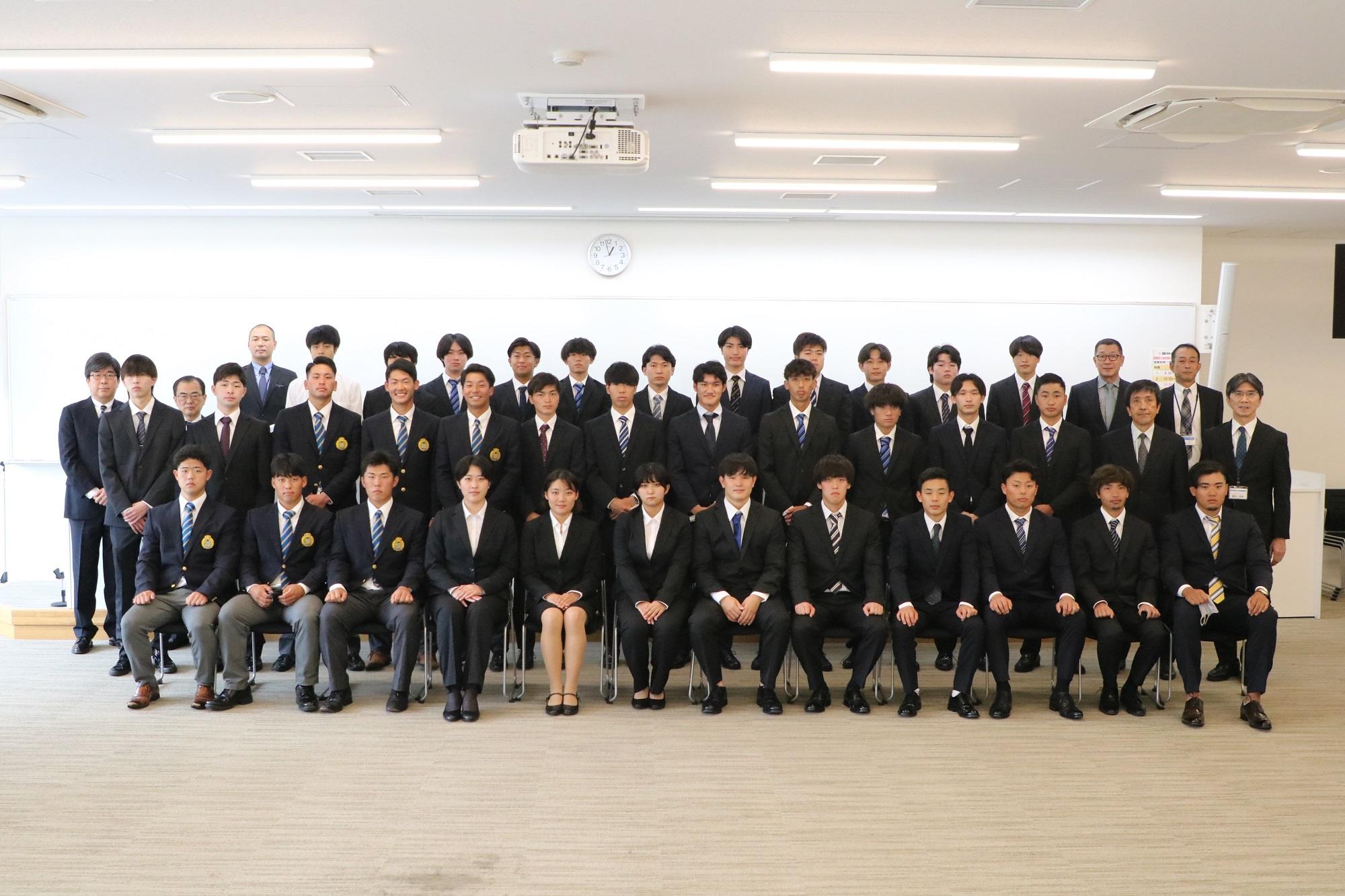 井口徹郎キャリアセンター長は、チームに入ったことで安心するのではなく、今後どのように取り組むかが重要で、壁にぶつかったときには仲間と助け合って乗り越えてほしいと伝え、「本学で学んだこと、コアチームで学んだことはこの先の人生で必ず活きてきます」と語りかけた。