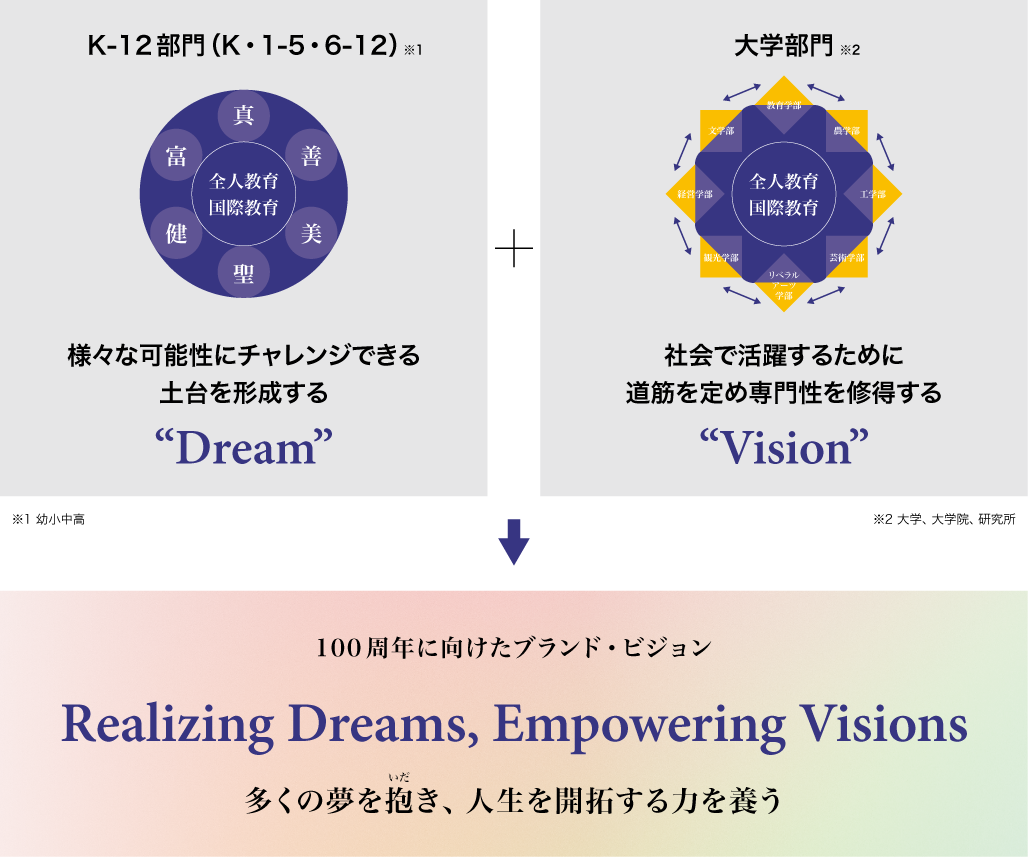 「玉川学園のブランド・ビジョン」をはじめ、大学各学部等それぞれのブランドについても精査し、第3フェーズ「夢の実現へ」に向け取り組みはさらに進化していきます。