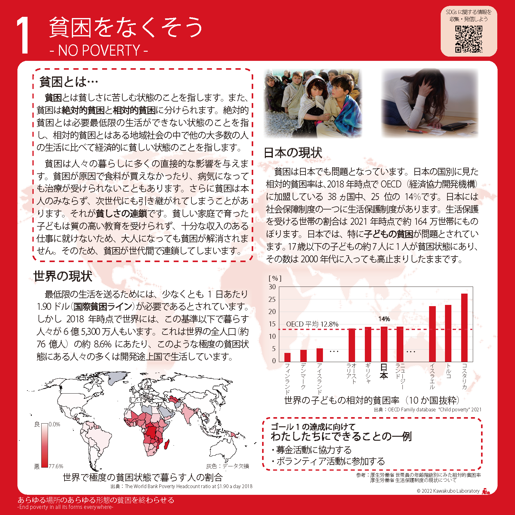 「SDGsスタディパネル」は、SDGsのゴールごとに、関連するキーワードや世界と日本の現状がまとめられた計17枚のパネルです。教育現場はもちろんのこと、あらゆる分野の皆様のSDGs理解促進にもご活用いただけます。