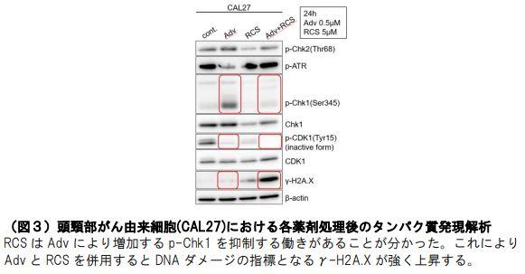 今回の発見は TP53 に変異を持つことががんゲノム検査によって判明した患者に対し、Adv と RCS を併用することでより治療効果を高めることができる可能性を見出しました。Adv と RCS はともに臨床試験が進行中の薬剤ですが、Adv はすでに頭頸部癌領域においては既存の治療法に Adv を組み合わせた臨床試験が進行中です。今後の実臨床での両薬剤併用療法が大いに期待できる薬剤の組み合わせです。TP53 機能を欠く細胞に対して高い特異性を持つこの薬剤の組み合わせは、TP53 に変異を持つ頭頸部癌、および TP53 機能異常を起こすヒトパピローマウイルス(HPV)陽性の頭頸部癌の患者にとって治療の良い選択肢になると思われます。