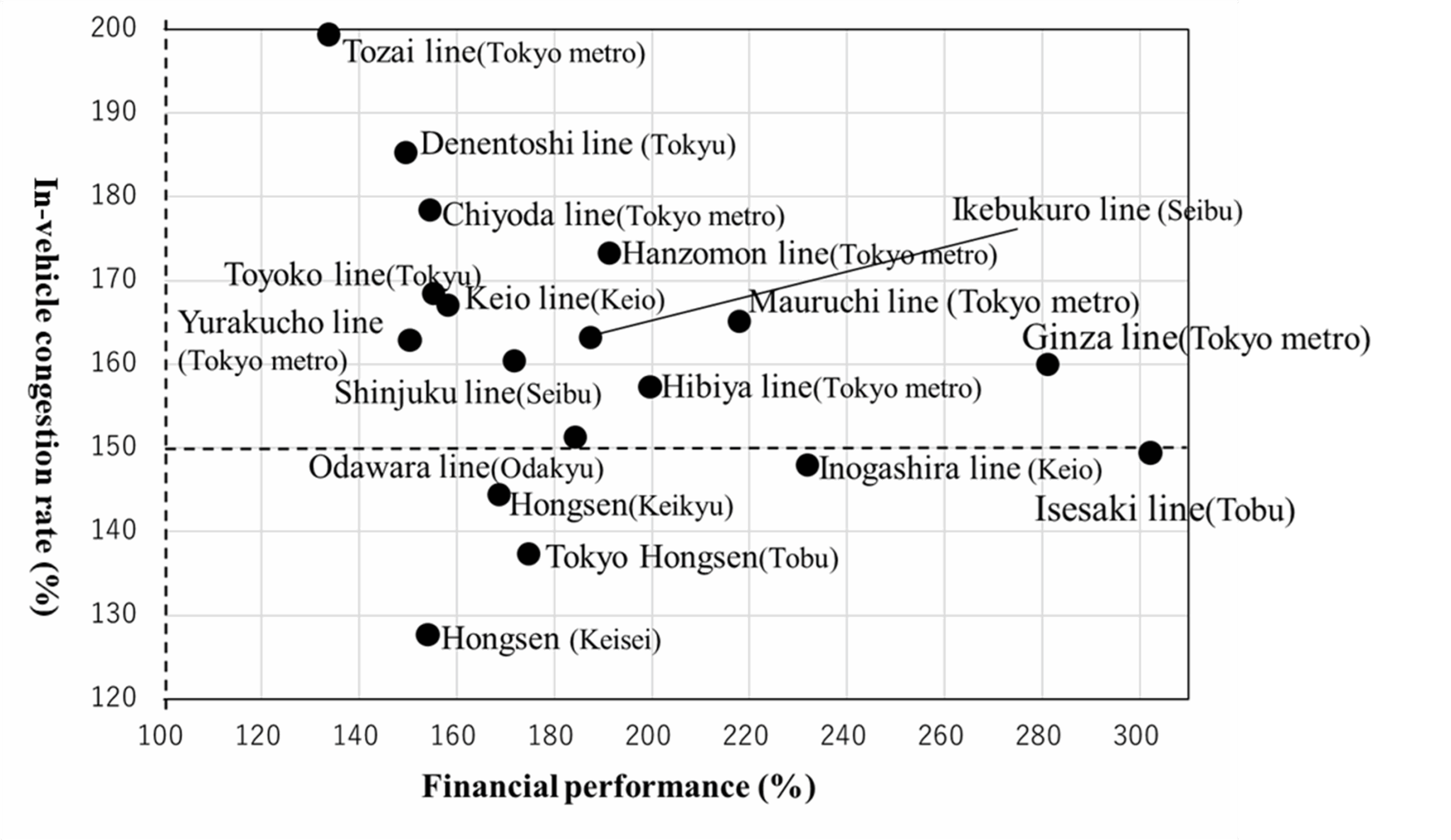 一方で、一部の鉄道事業者は低い車内混雑率を維持しながら、良好な財務状況を実現するために、業務効率の向上や営業費用の削減、営業収益の強化に努めています。それにもかかわらず、鉄道の運行効率や鉄道事業者の財務パフォーマンスに関する実証研究においては、これまで車内混雑はほとんど考慮されてきませんでした。