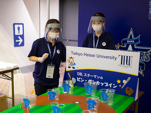 「帝京平成大学デー」において、横浜スタジアム内に設置された特設ブースにて、来場したお客さまへのサービス提供